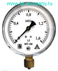 Манометр технический МТ-100 предназначен для измерения избыточного давления неагрессивных, некристаллизующихся жидкостей, газа и пара.