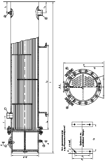 Основные размеры охладителей выпара атмосферных деаэраторов ОВА-2, ОВА-8, ОВА-16, ОВА-24 (рис.2) приведены в табл.1, экспликация штуцеров - в табл 2.