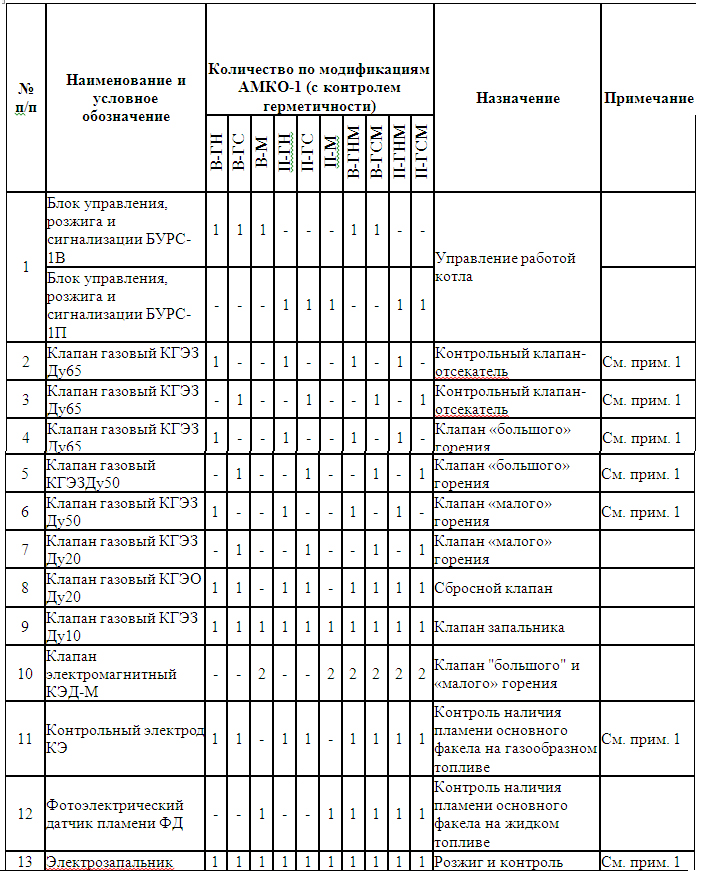 Рекомендуемые варианты состава комплекта поставки системы АМКО-1 приведены в таблице: